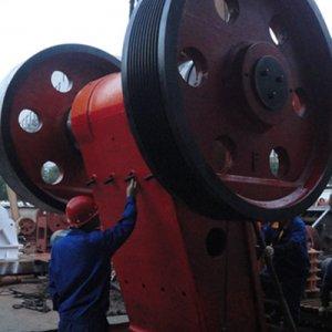 顎式破碎機(jī)俗稱顎破,又名老虎口。由動(dòng)顎和靜顎兩塊顎板組成破碎腔,模擬動(dòng)物的兩顎運(yùn)動(dòng)而完成物料破碎作業(yè)的破碎機(jī)。顎式破碎機(jī)在礦山、建材、基建等部門主要用作粗碎機(jī)和中碎機(jī)。按照進(jìn)料口寬度大小來分為大、中、小型三種,進(jìn)料口寬度大于600MM的為大型機(jī)器,進(jìn)料口寬度在300-600MM的為中型機(jī),進(jìn)料口寬度小于300MM的為小型機(jī)。顎式破碎機(jī)結(jié)構(gòu)簡(jiǎn)單,制造容易,工作可靠。顎式破碎機(jī)的工作部分是兩塊顎板,一是固定顎板(定顎),垂直(或上端略外傾)固定在機(jī)體前壁上,另一是活動(dòng)顎板(動(dòng)顎),位置傾斜,與固定顎板形成上大下小的破碎腔(工作腔)?;顒?dòng)顎板對(duì)著固定顎板做周期性的往復(fù)運(yùn)動(dòng),時(shí)而分開,時(shí)而靠近。分開時(shí),物料進(jìn)入破碎腔,成品從下部卸出;靠近時(shí),使裝在兩塊顎板之間的物料受到擠壓,彎折和劈裂作用而破碎。